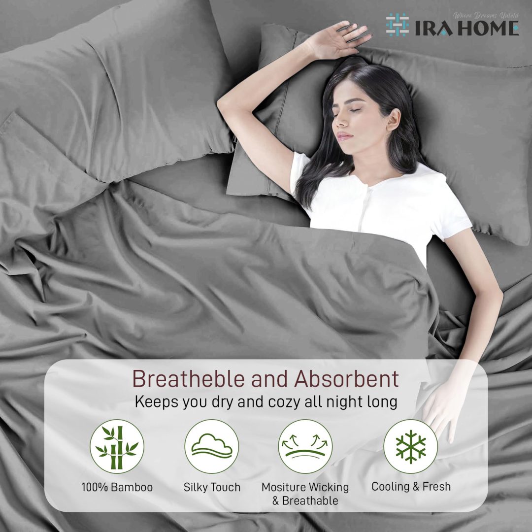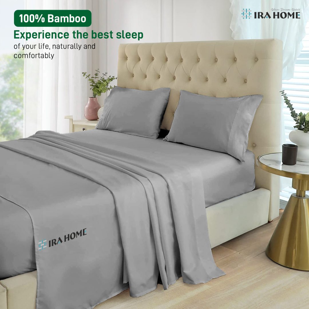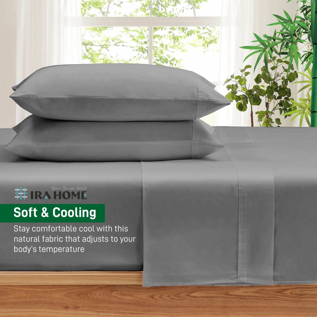 100% Organic Bamboo 4 Piece Sheet Set For King Size Bed (Grey)