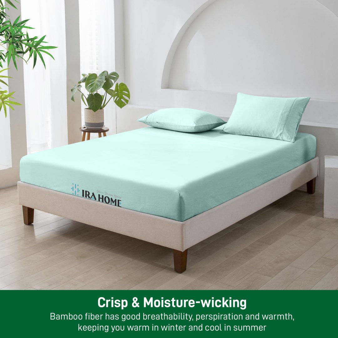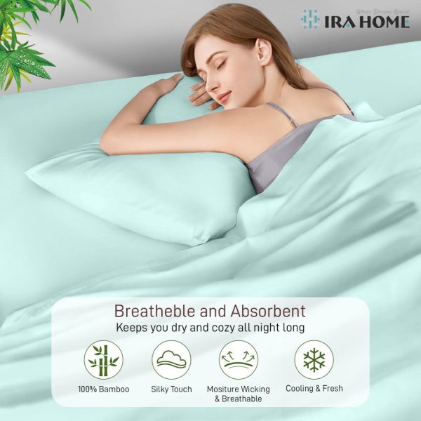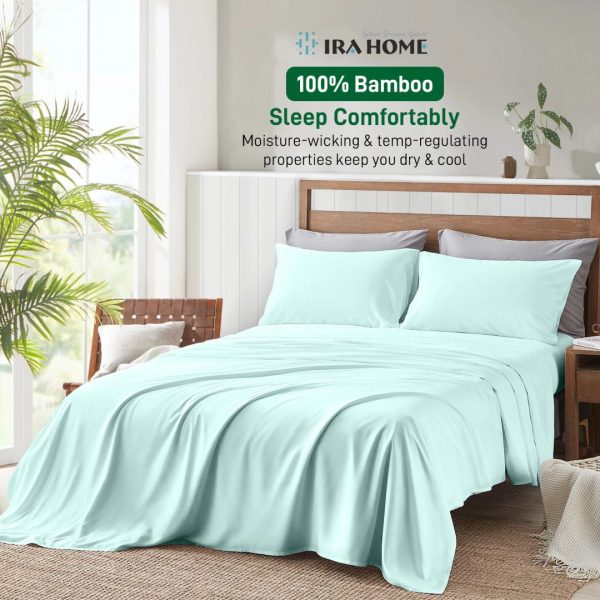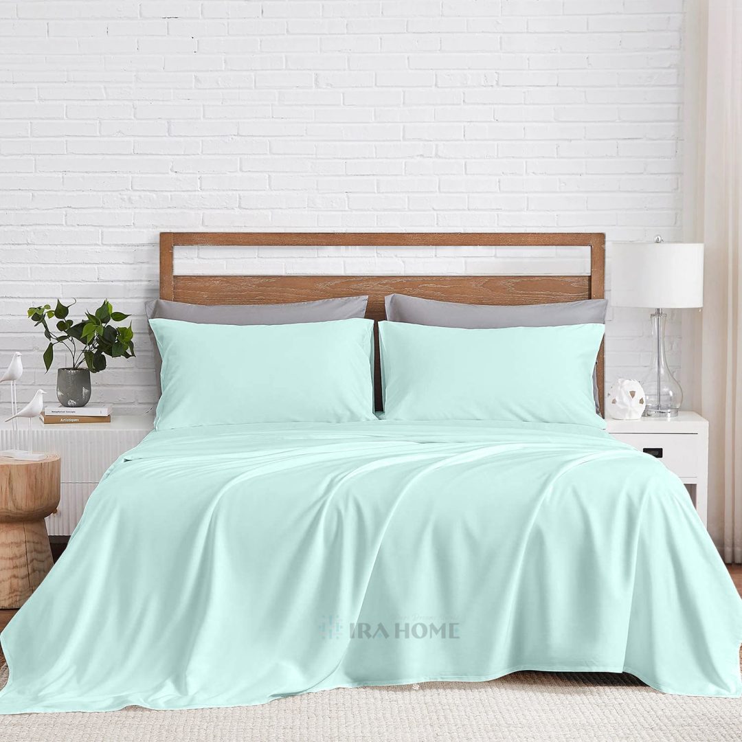 100% Organic Bamboo 4 Piece Sheet Set For King Size Bed (Aqua Blue)