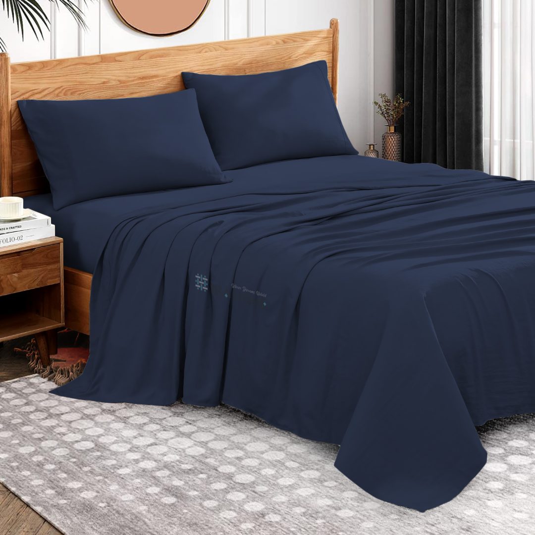 100% Egyptian Cotton 3 Piece Sheet Set For King Size Bed (Navy Blue)
