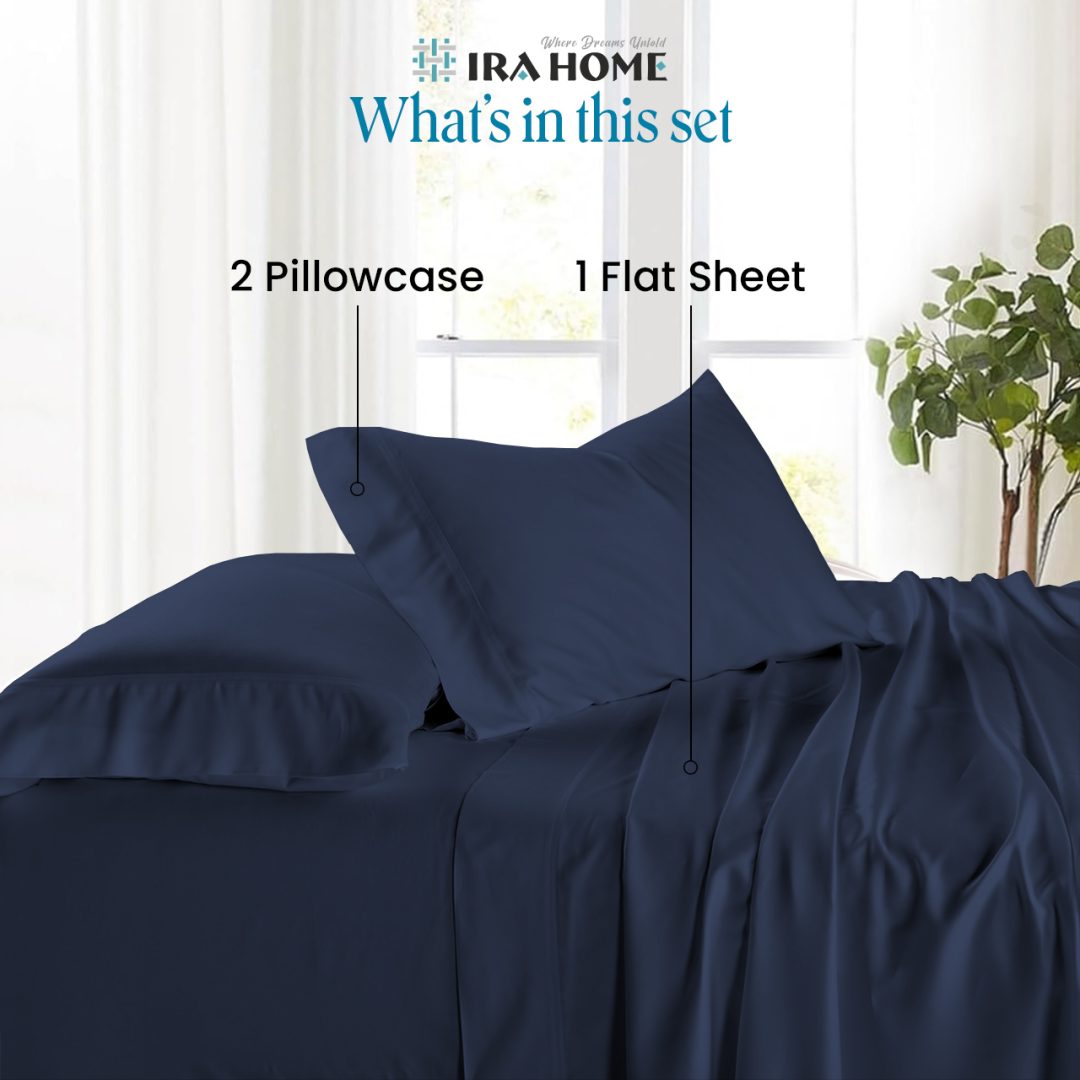 IRA HOME 500-TC Egyptian Cotton 3-Piece Bedsheet Set Experience the feeling of everyday luxury with the IRA HOME 100% Egyptian Cotton Standard King Size 3-Piece Bedsheet Set {1 Flat Bed Sheet (108” x 108”) & 2 Pillowcase (18” x 28”)}.