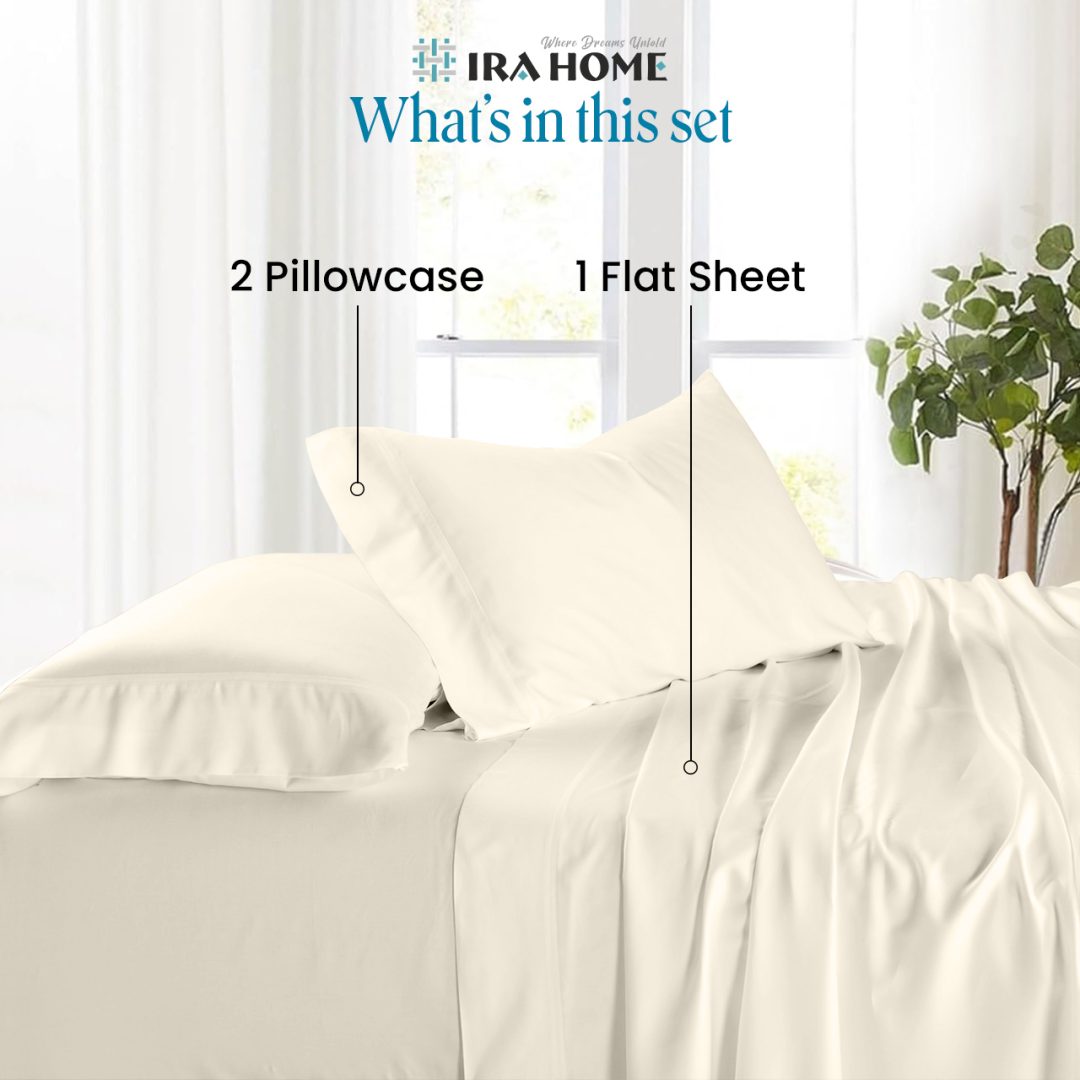 IRA HOME 500-TC Egyptian Cotton 3-Piece Bedsheet Set Experience the feeling of everyday luxury with the IRA HOME 100% Egyptian Cotton Standard King Size 3-Piece Bedsheet Set {1 Flat Bed Sheet (108” x 108”) & 2 Pillowcase (18” x 28”)}.