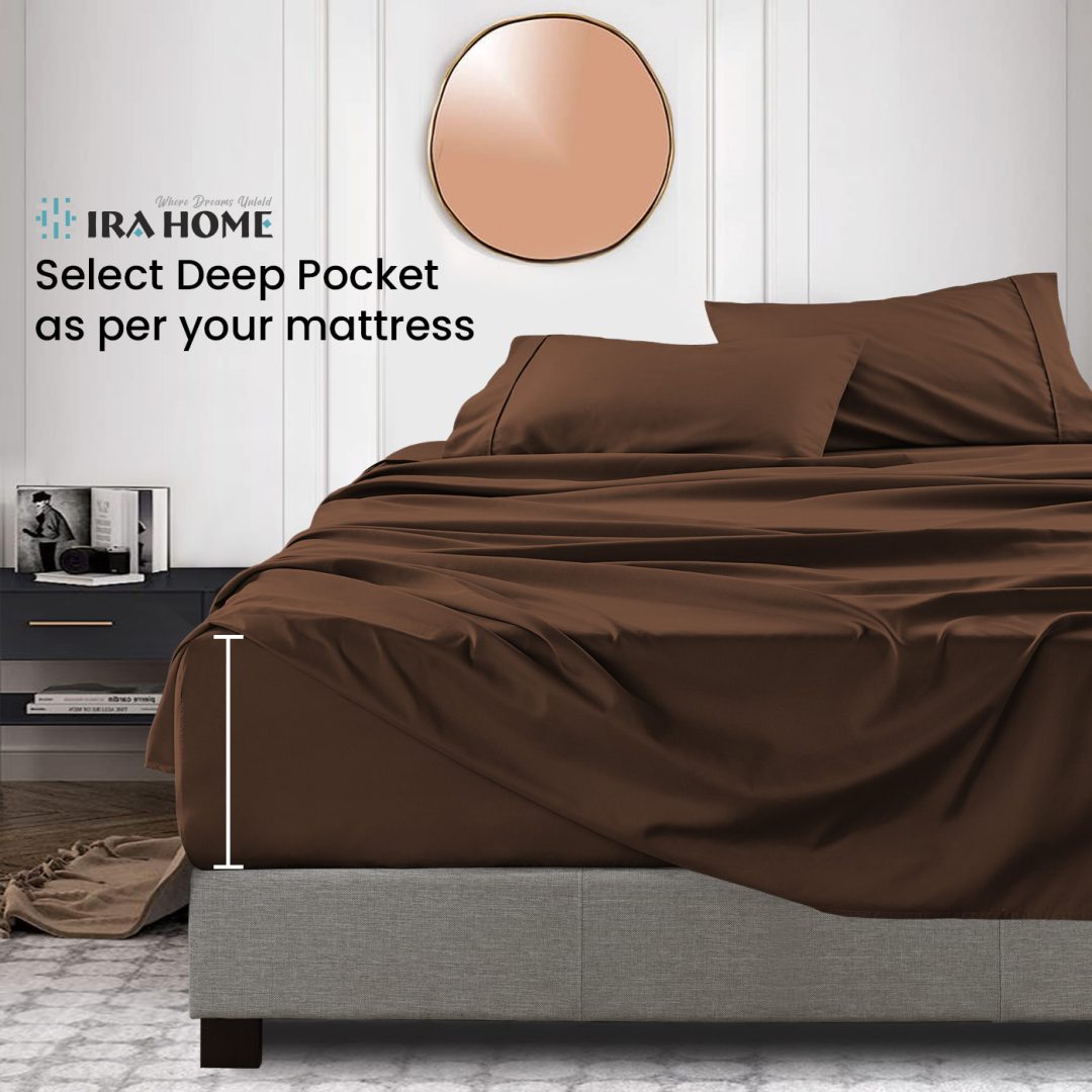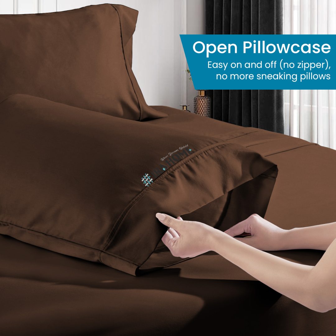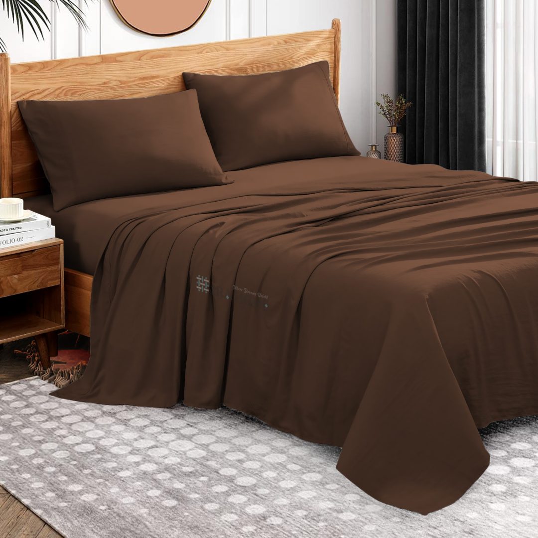 100% Egyptian Cotton 4 Piece Sheet Set For King Size Bed (Chocolate)