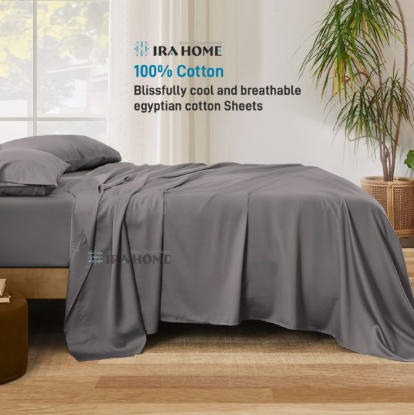 IRA HOME 500-TC Egyptian Cotton 4-Piece Bedsheet Set Experience the feeling of everyday luxury with the IRA HOME 100% Pure Cotton Standard King Size 4-Piece Bedsheet Set {1 Flat Sheet (108” x 108”), 1 Fitted Sheet Fits Up To 10” Deep Pocket (72” x 78”) & 2 Pillowcase (18” x 28”)}. Made of 100% Egyptian Cotton, the Bedsheet offers supremely soft comfort and strength—perfect for use in any master or guest bedroom.