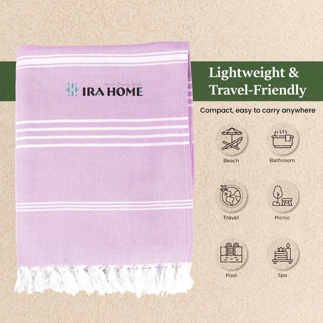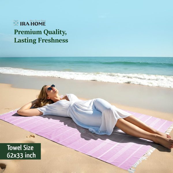 Relax in eco-friendly luxury with the Ira Beach Towel in Purple, crafted from 100% bamboo fibers. Soft, lightweight, and highly absorbent, this towel is naturally antibacterial and perfect for beach outings, poolside lounging, or spa sessions, bringing a rich purple hue to your summer essentials.