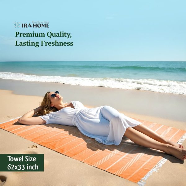 Embrace soft, eco-friendly comfort with the Ira Beach Towel in Peach, made from 100% bamboo fibers. Lightweight, absorbent, and naturally antibacterial, it’s perfect for beach trips, poolside relaxation, or spa days. Its gentle peach hue adds a warm and cheerful touch to your summer essentials.