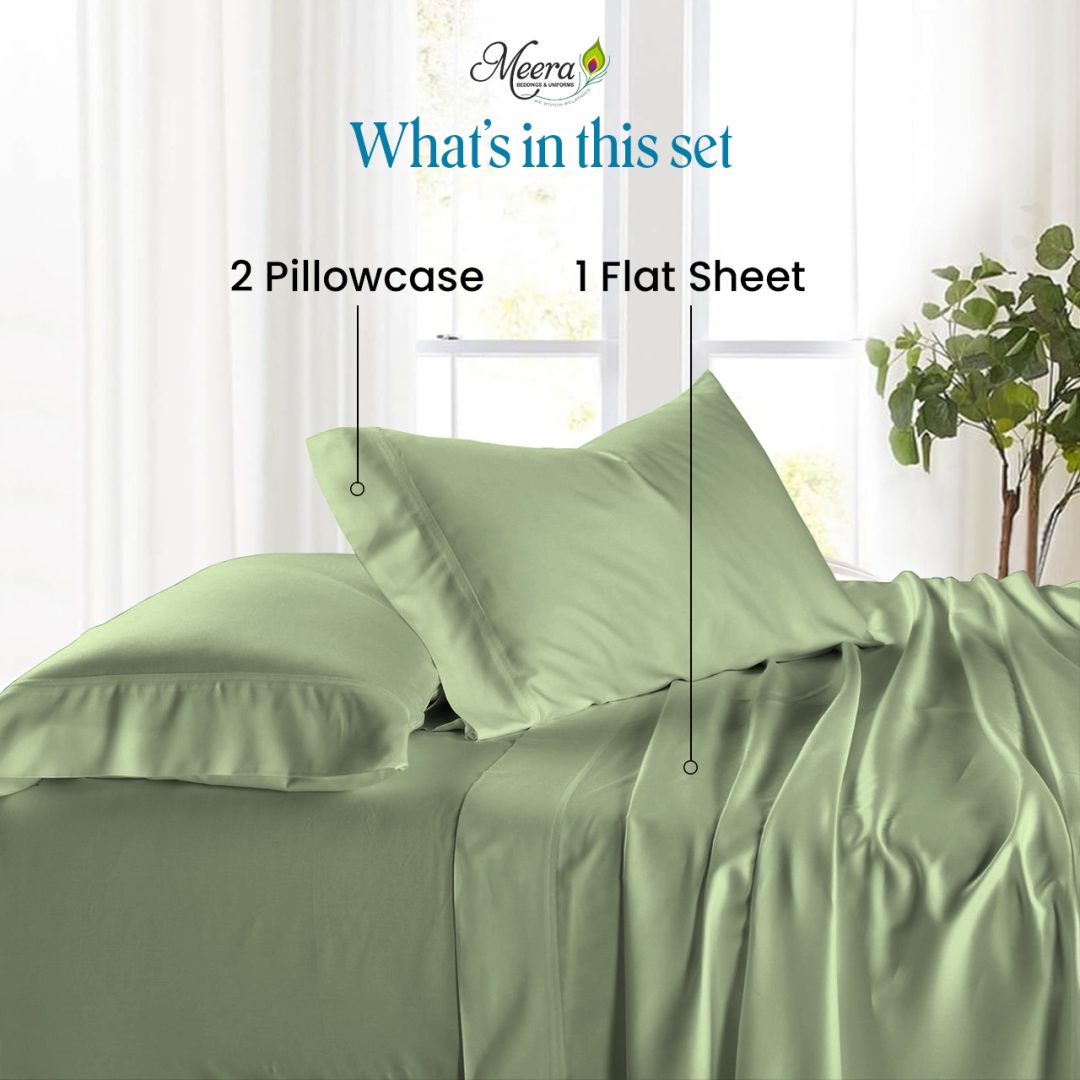 Bring elegance and comfort to your bedroom with the Meera 3pcs Bedsheet Set in Moss. Crafted from soft, breathable fabric, this set includes a bedsheet and two matching pillow covers. Its soothing moss color adds a touch of serenity while ensuring a cozy night’s sleep.