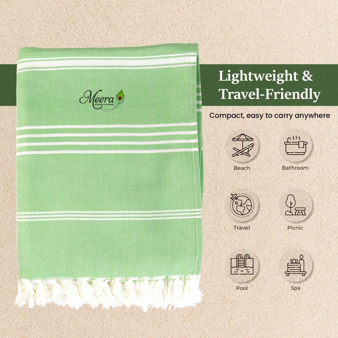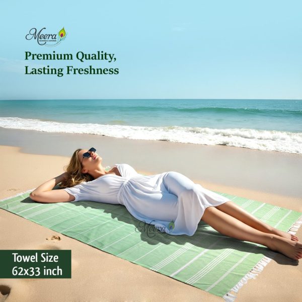 Stay cool and comfortable with the Light Green Meera Beach Towel. Soft, lightweight, and highly absorbent, it’s perfect for beach outings, poolside lounging, or spa days. Its refreshing light green color adds a vibrant touch to your summer essentials.